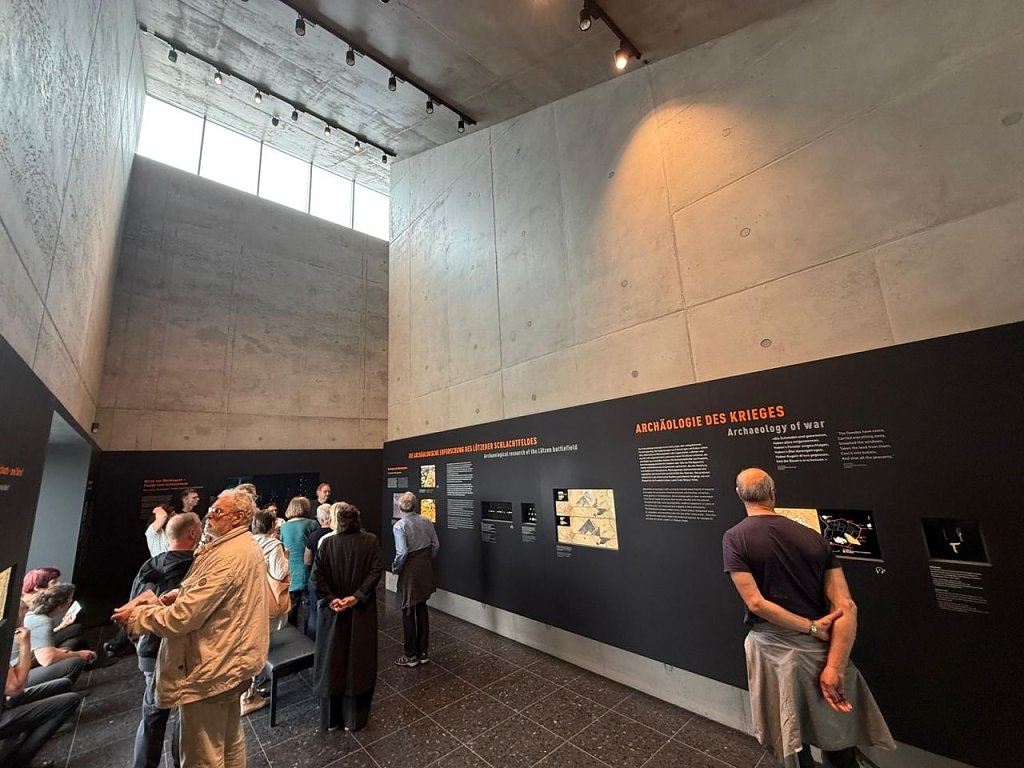 In Lützen stand die Auseinandersetzung mit der Schlacht von 1632 im Mittelpunkt. Das 2024 eröffnete Lützen-Museum, entworfen von Peter Zirkel Architekten, Dresden, mit Naumann Wasserkampf Architekten, Weimar, und den Landschaftsarchitekten Station C23, Leipzig, dokumentiert die Kriegsgeschehnisse eindrucksvoll und architektonisch sensibel.